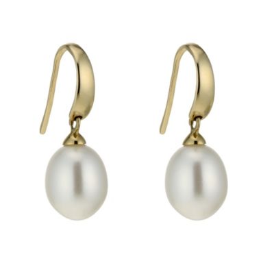 9ct gold cultured freshwater pearl drop hook earrings Ernest Jones